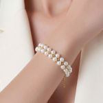 Ky byzylyk elegant me dy rreshta perlash është një aksesor perfekt për çdo femër që dëshiron stil dhe elegancë. I dizajnuar me perla të bardha me shkëlqim dhe detaje të vogla gold, ky byzylyk krijon një pamje luksoze dhe shumë të rafinuar. Mbyllja praktike me kapëse metalike dhe zinxhir rregullues siguron përshtatje të rehatshme në dorë.