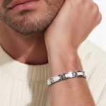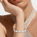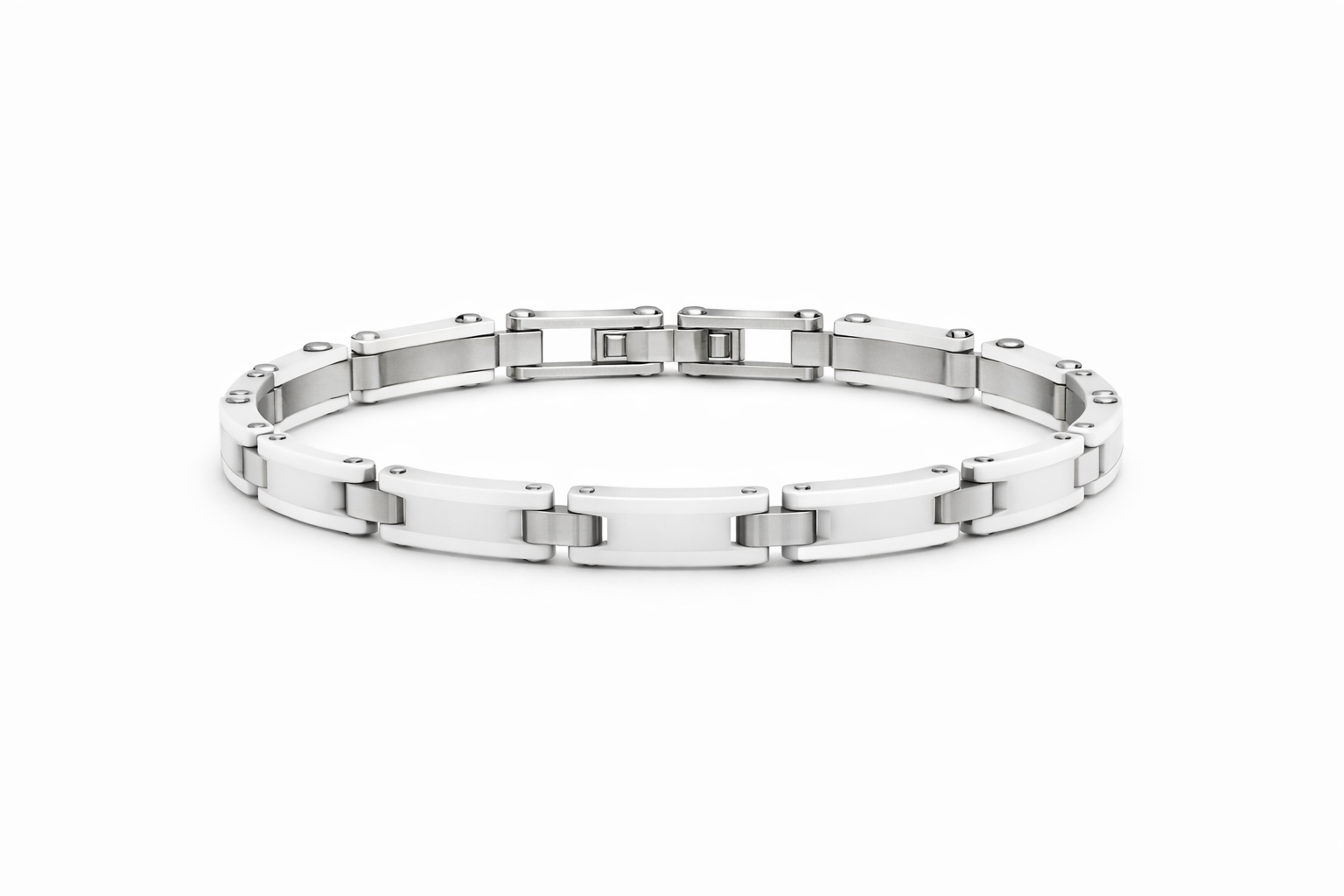 Ky byzylyk elegant nga kombinon dizajnin modern me materialet premium. I punuar nga stainless steel dhe keramikë e bardhë, ky aksesor ofron qëndrueshmëri të lartë dhe një pamje shumë të rafinuar. Lidhjet elegante të dizajnuara me stil minimalist krijojnë një pamje luksoze që përshtatet perfekt si për meshkuj ashtu edhe për femra. Ideale për përdorim të përditshëm ose për të kompletuar një veshje elegante.