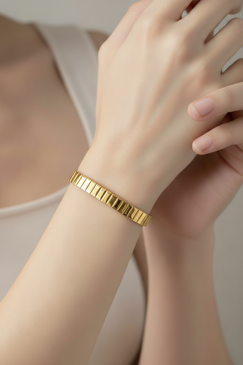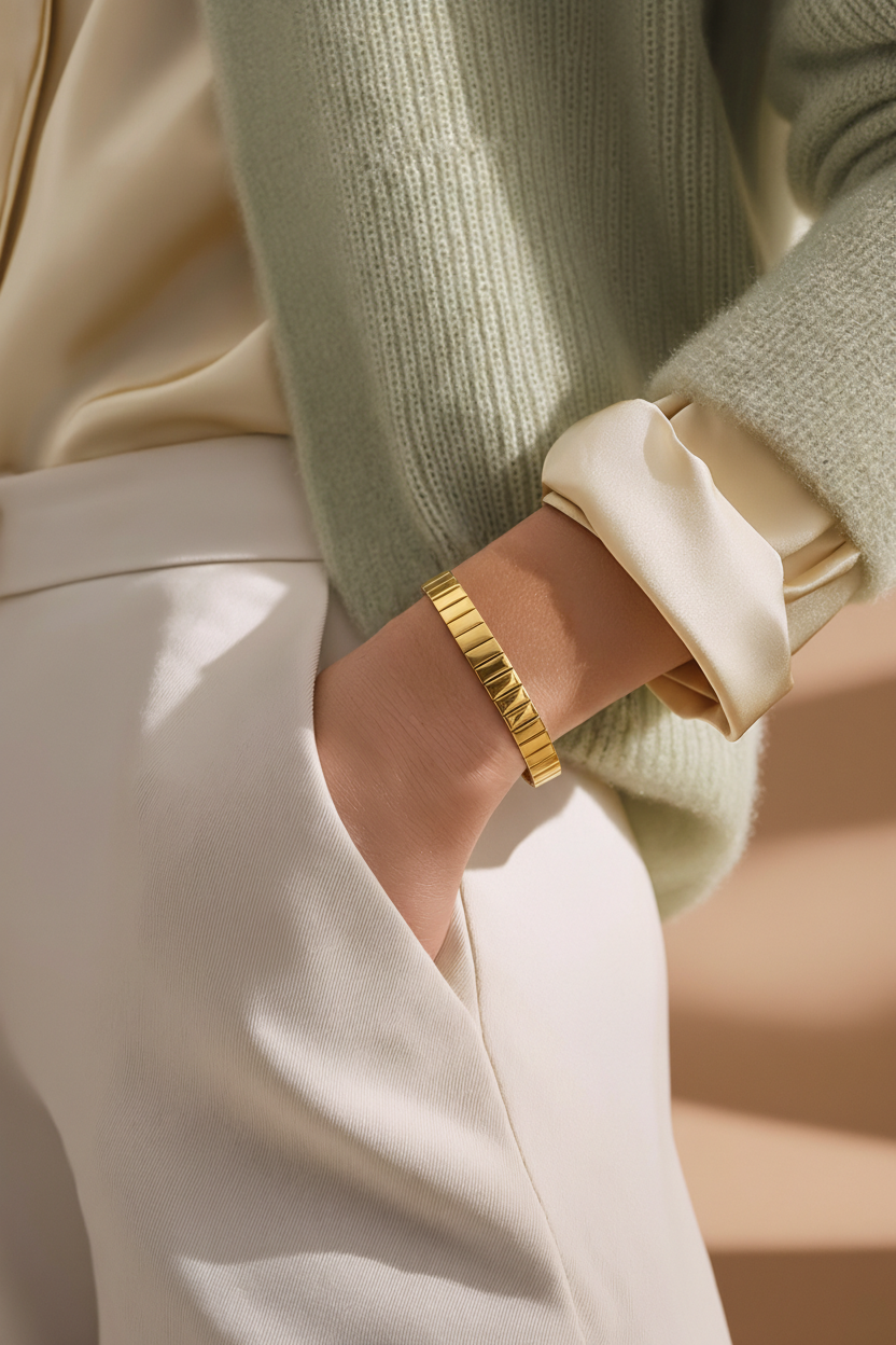 E dizajnuar për të reflektuar bukurinë dhe elegancën femërore, kjo dorëzore nga CM është një aksesor që nuk del kurrë nga moda. E larë në Gold 24 karat, ajo sjell një shkëlqim të butë dhe luksoz që kompleton çdo stil me finesë.