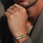 - Dorzore elegante për meshkuj, e kombinuar me rrip të zi dhe pllakë metalike në ngjyrë gold. Dizajni i saj i drejtë dhe modern, i plotësuar me detaje të zeza dekorative, krijon një pamje të sofistikuar dhe mashkullore.