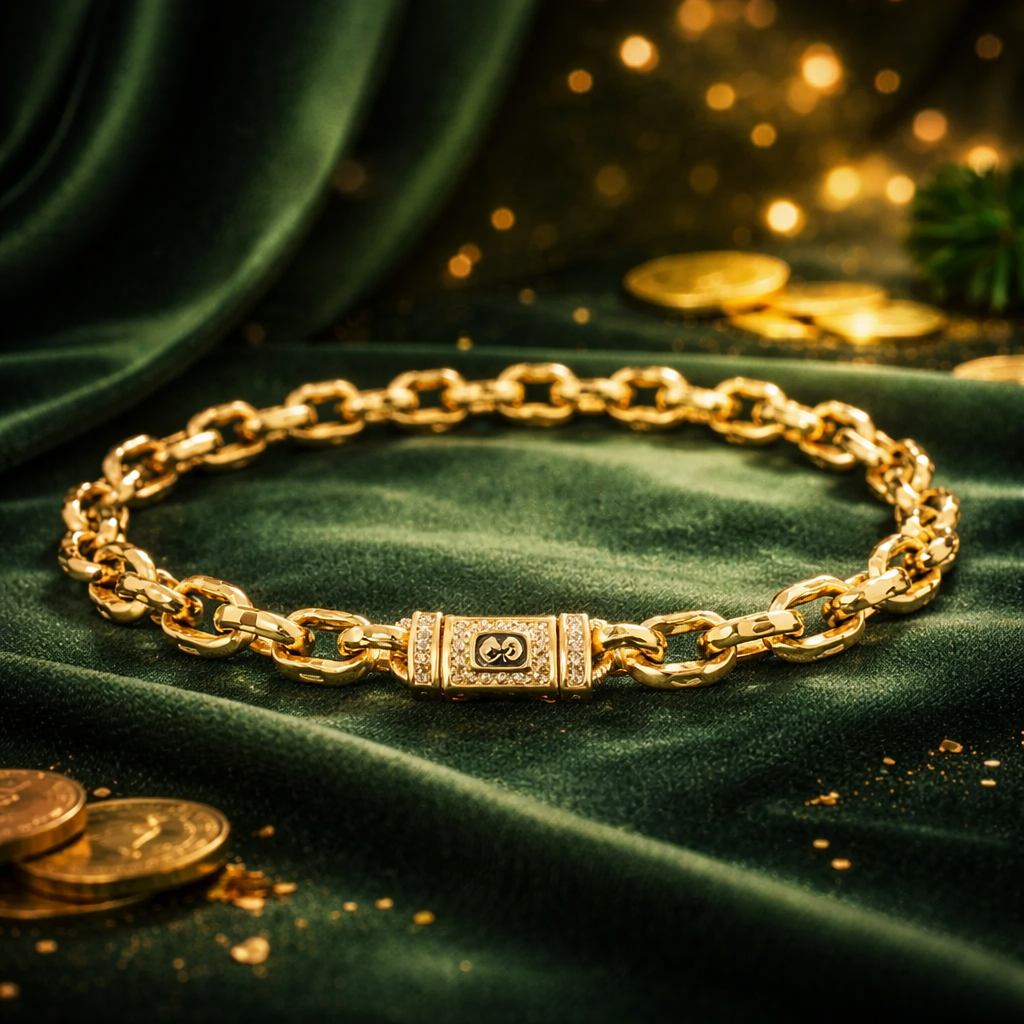 Monaco Chain është një byzylyk elegant me dizajn modern dhe luksoz. Me hallkat karakteristike të stilit Monaco dhe ngjyrën e shkëlqyer gold, ky aksesor është perfekt për ata që duan stil të sofistikuar dhe të dallueshëm.