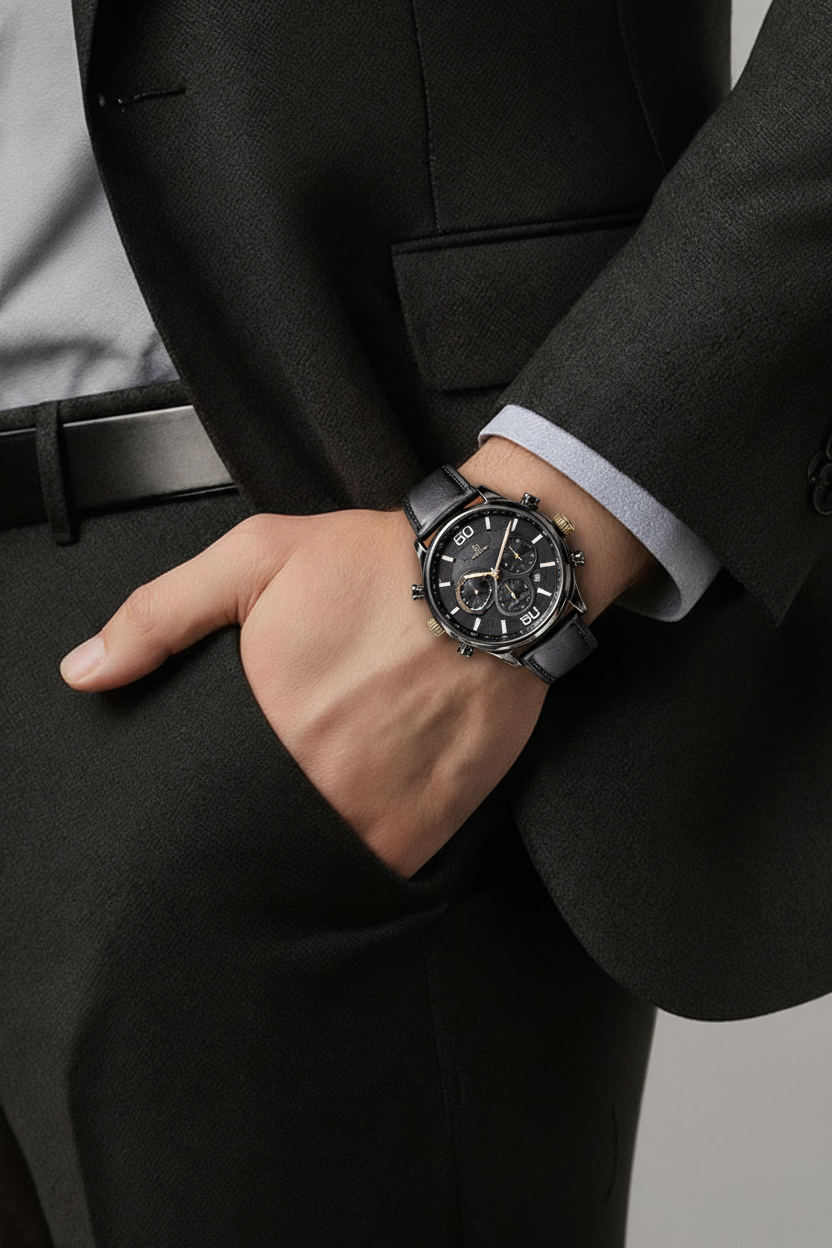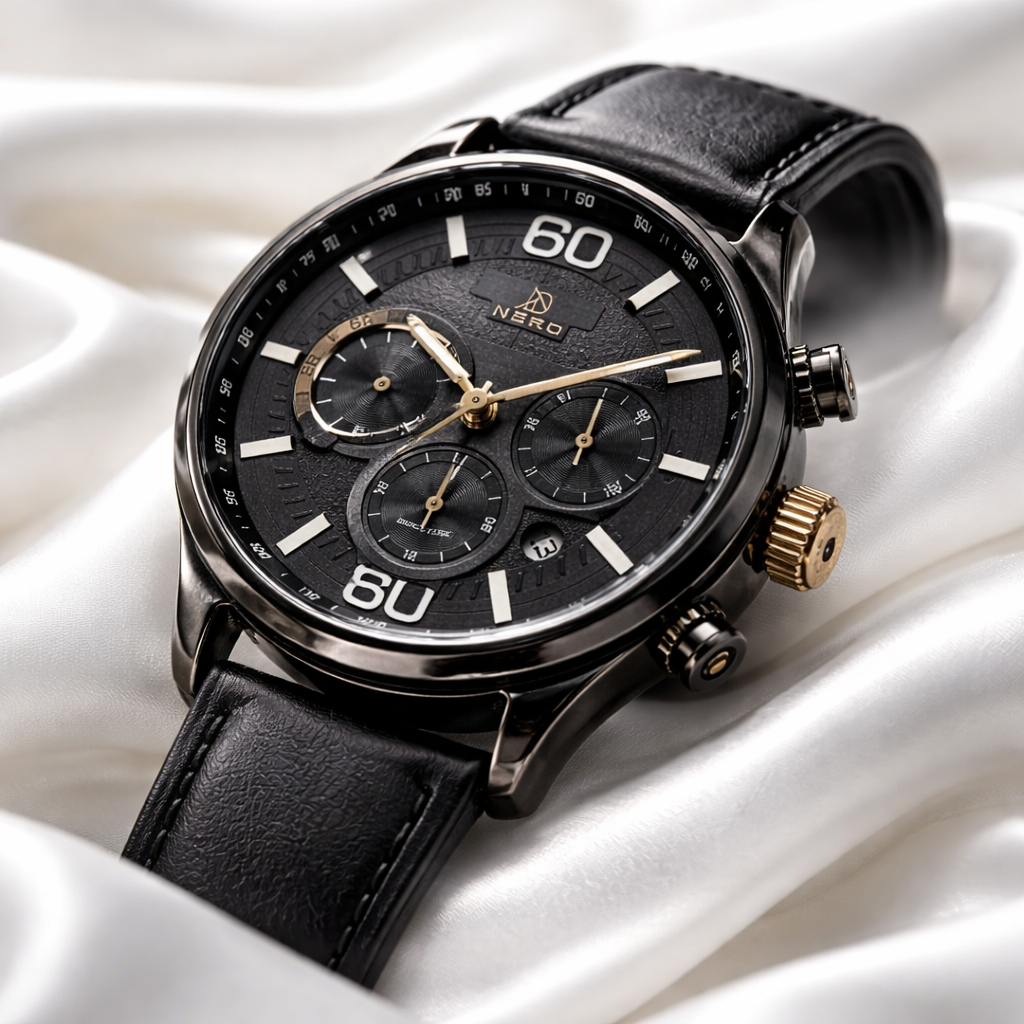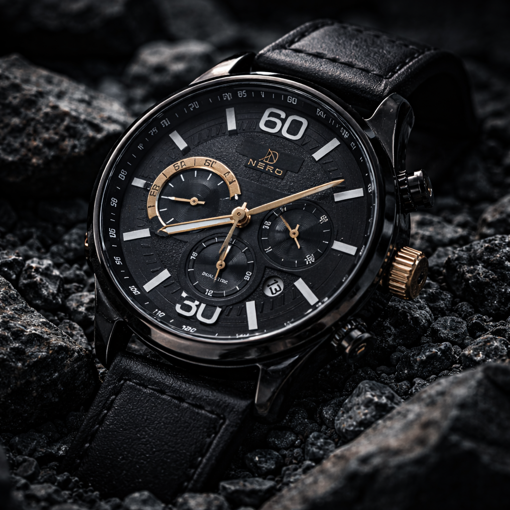 NERO nuk ndjek trendet – i krijon ato. Kjo orë stylish për meshkuj kombinon mekanizëm kualitativ me materiale të qëndrueshme dhe luksoze, duke sjellë elegancë dhe funksionalitet në çdo detaj.