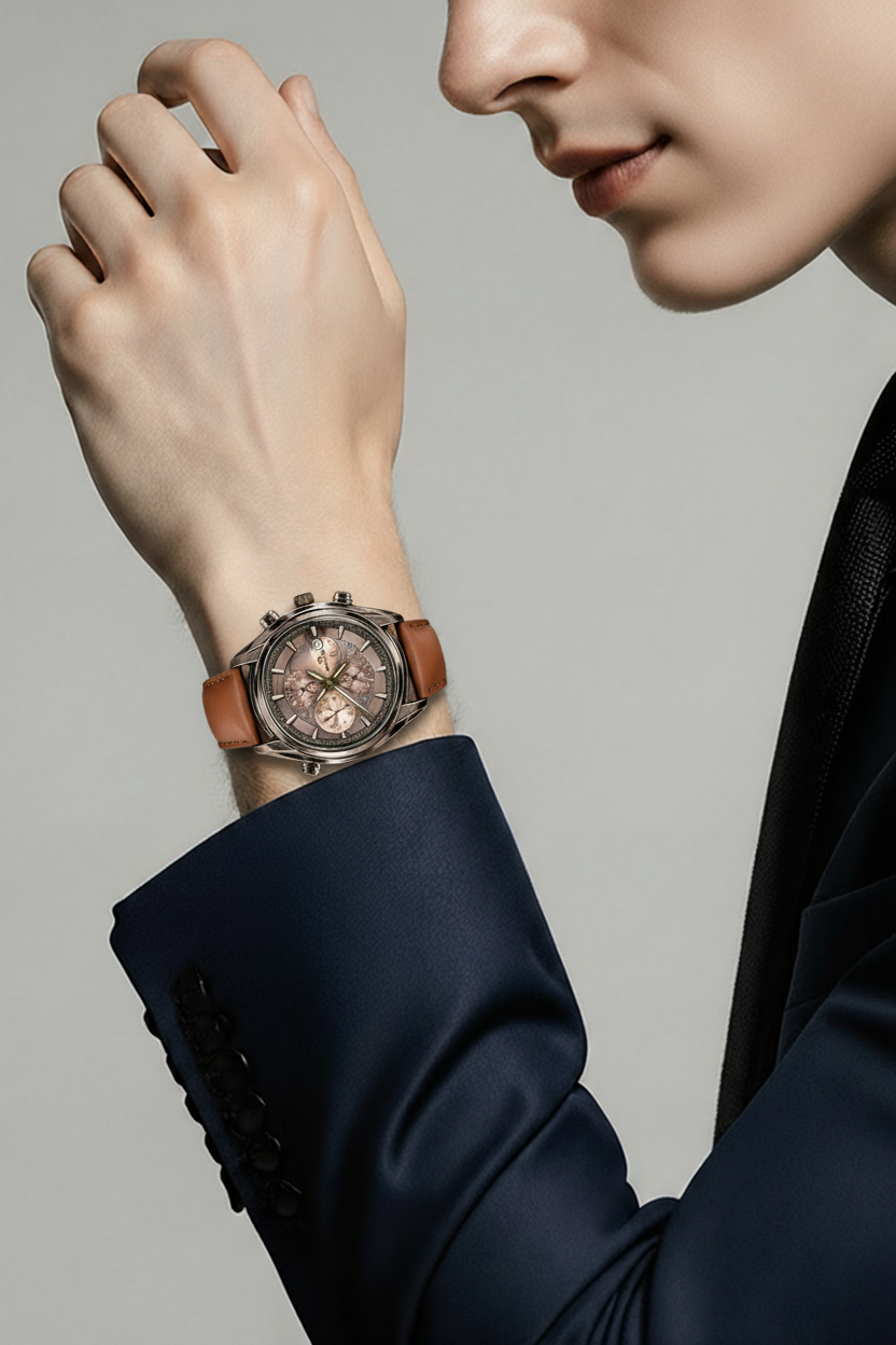 NERO nuk ndjek trendet – i krijon ato. Kjo orë stylish për meshkuj kombinon mekanizëm kualitativ me materiale të qëndrueshme dhe luksoze, duke sjellë elegancë dhe funksionalitet në çdo detaj.
