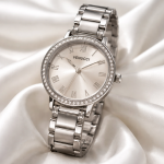 Dizajni i saj i pastër dhe elegant kombinohet lehtësisht me veshje formale apo të përditshme, duke e bërë aksesor ideal për çdo rast. Numrat romakë në cifër i japin një pamje klasike dhe luksoze, ndërsa përfundimi silver sjell shkëlqim subtil dhe modern.