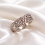 Një model luksoz që kombinon finesën dhe shkëlqimin maksimal. E punuar me përkushtim dhe e dekoruar me gurë zirkon të vendosur në mënyrë perfekte, kjo unazë reflekton dritë nga çdo kënd duke krijuar një efekt mahnitës.