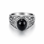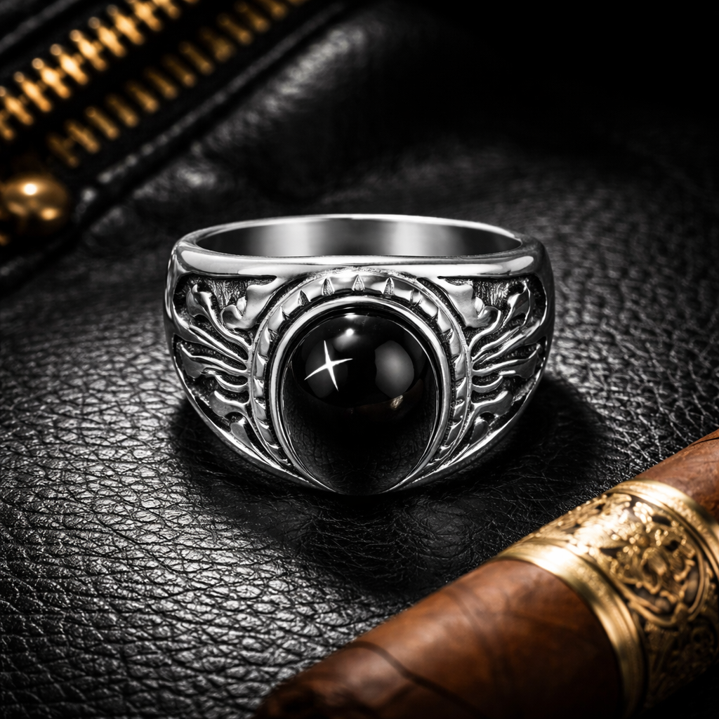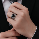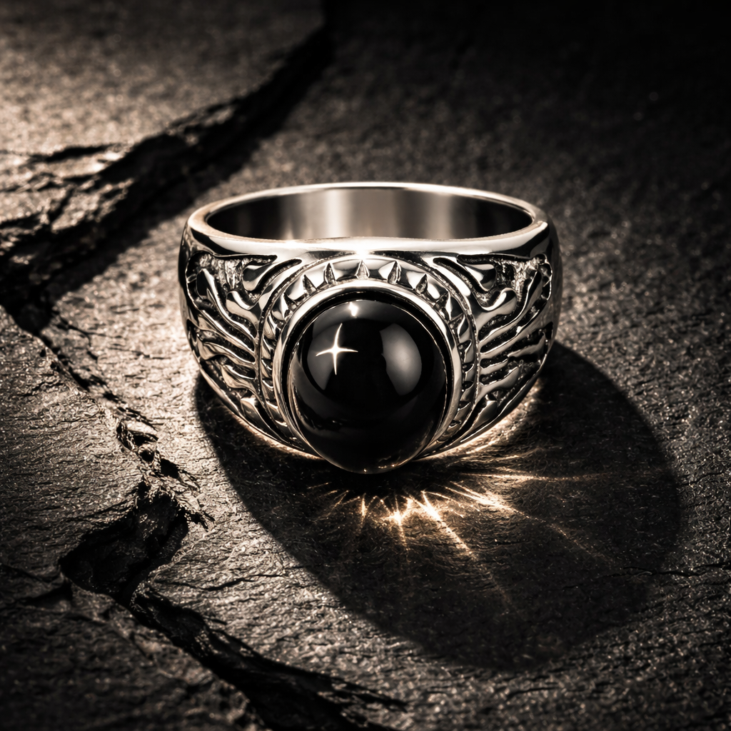Unazë Silver me Gur të Zi – Stil i Fuqishëm dhe Elegant
