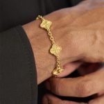 Modeli më i kërkuar nga Van Cleef përfaqëson elegancën klasike dhe luksin e përjetshëm. I frymëzuar nga dizajni ikonik i brendit, ky aksesor dallohet për detajet e rafinuara dhe përfundimin perfekt, duke i dhënë çdo kombinimi një prekje unike stili.