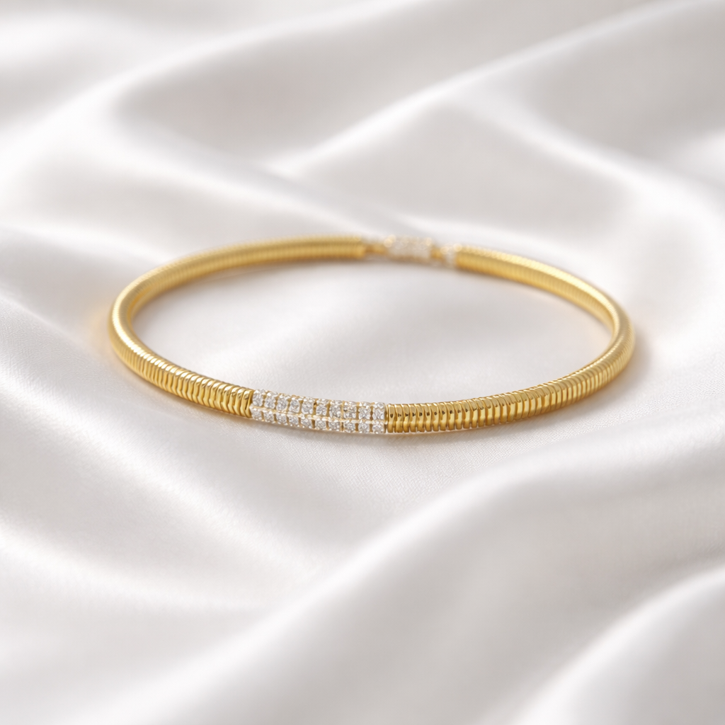 Elegancë e rafinuar dhe shkëlqim i përjetshëm në një dizajn modern. Ky byzylyk ekskluziv nga CM Jewelry është i punuar nga çelik inox cilësor dhe i larë në Gold 24K, duke ofruar rezistencë maksimale dhe përfundim luksoz.