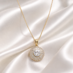 Elegancë që reflekton dritë në çdo lëvizje. Kjo varëse e kristalizuar me gurë zirkon ofron shkëlqim të pastër dhe stil të rafinuar, perfekte për përditshmëri apo raste të veçanta. Një detaj delikat që kompleton çdo veshje me finesë dhe klas.