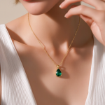 Kjo varëse elegante me gur emerald përfaqëson luksin, finesën dhe bukurinë natyrale. Ngjyra e gjelbër intensive e emerald-it simbolizon harmoni, dashuri dhe energji pozitive, duke e bërë këtë varëse një zgjedhje perfekte për çdo stil dhe rast të veçantë.