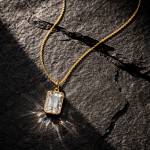 Minimalizëm elegant dhe shkëlqim i pastër në një dizajn modern. Kjo varëse me zinxhir të hollë gold përmban një gur kristali drejtkëndor me prerje precize, i cili reflekton dritën bukur dhe i jep pamje të sofistikuar çdo kombinimi.