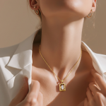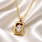 Një dizajn minimalist që reflekton finesë dhe luks. Kjo varëse me kornizë katrore gold dhe gur zirkon të kristalizuar në qendër sjell një shkëlqim të sofistikuar për çdo stil.
