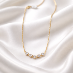Elegancë klasike me shkëlqim të përjetshëm. Kjo varëse delikate gold është e zbukuruar me gurë zirkon të rreshtuar në mënyrë harmonike, duke krijuar një efekt të sofistikuar dhe shumë elegant në qafë.