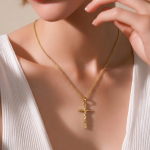 Kjo varëse elegante me kryq klasik në ngjyrë gold është një simbol i përjetshëm i besimit dhe stilit. Dizajni i hollë dhe i rafinuar i zinxhirit kombinohet perfekt me pendantin e kryqit, duke krijuar një aksesor shumë elegant dhe kuptimplotë.