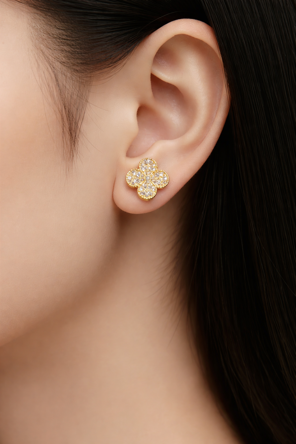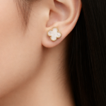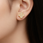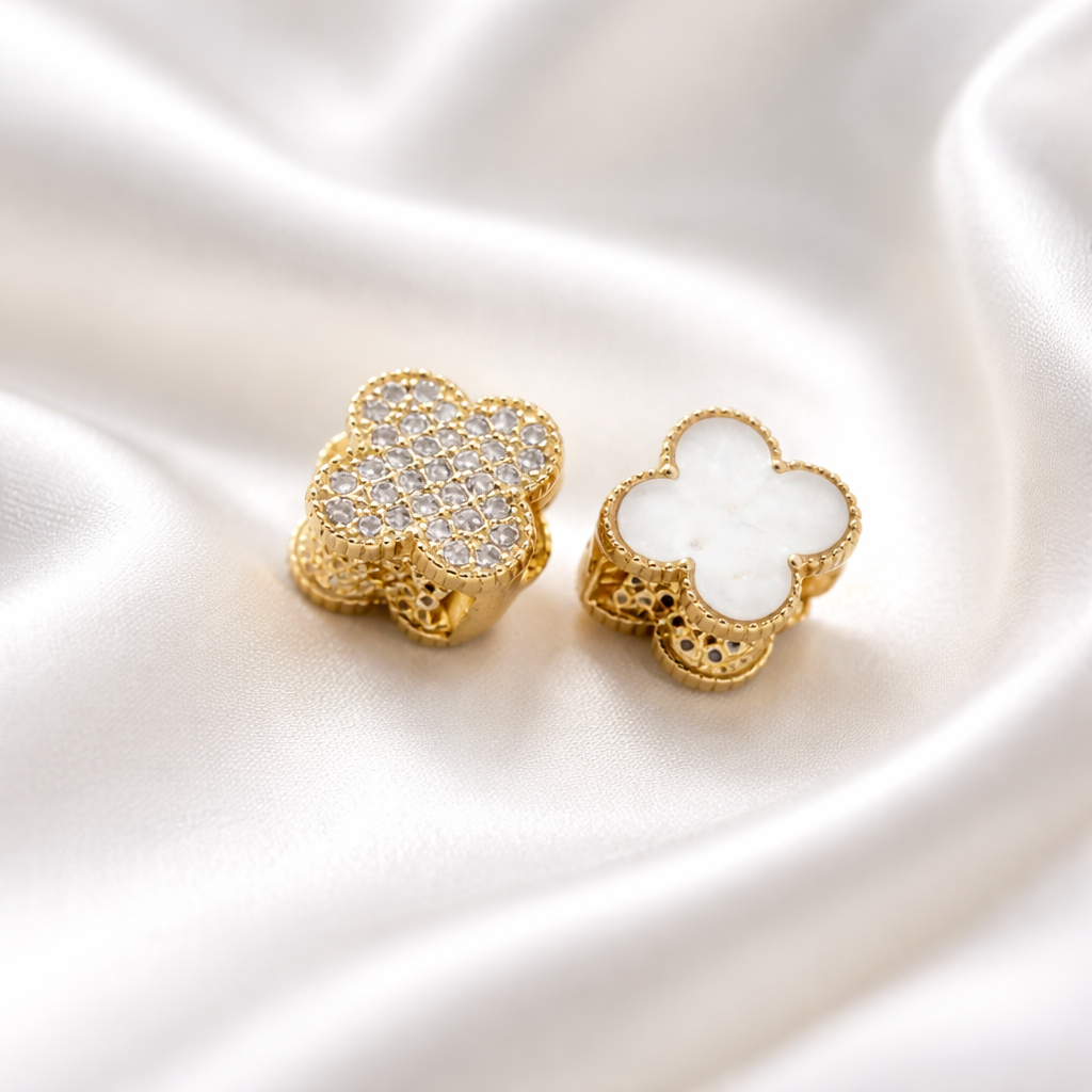 Vathë të inspiruar nga dizajni klasik “Alhambra”, me formë lule/katërfletëshe – simbol i fatit dhe finesës. Të punuar me përfundim gold cilësor, një model i kristalizuar me gurë zirkon për shkëlqim maksimal dhe një model me sipërfaqe të bardhë elegante për stil më të pastër dhe sofistikuar.