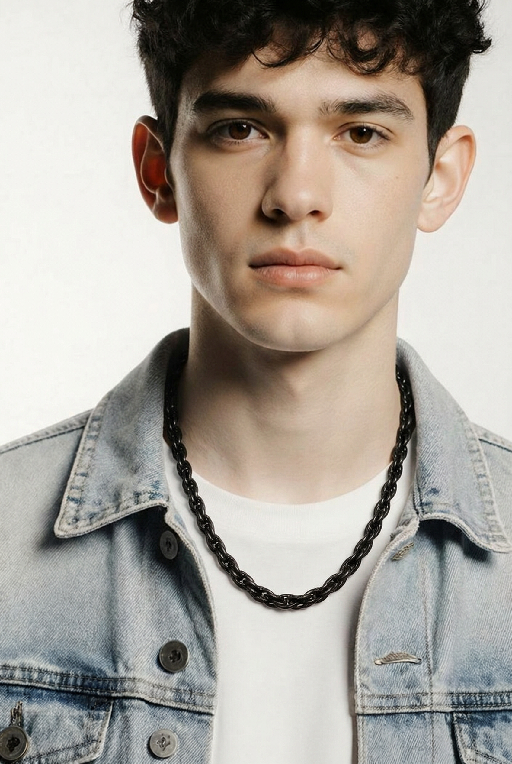 Një zinxhir modern për meshkuj me dizajn rope chain që krijon një pamje të fortë dhe shumë elegante. Ngjyra black metal i jep këtij aksesor një stil urban dhe modern që përshtatet me çdo veshje.